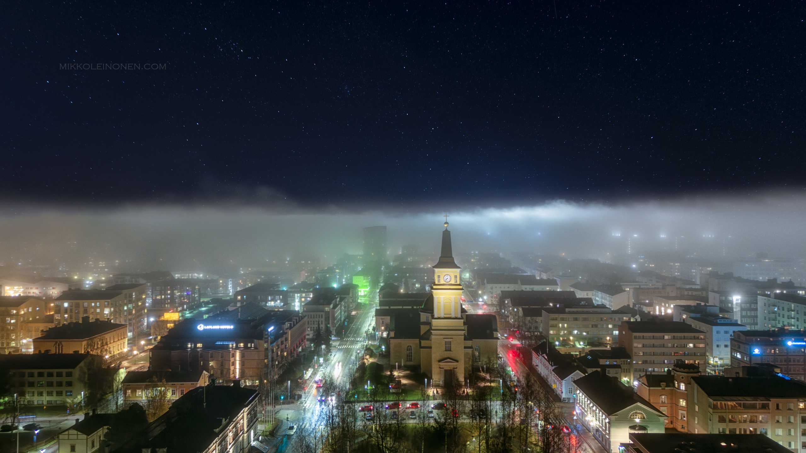 Star sky and fog above the city of Oulu