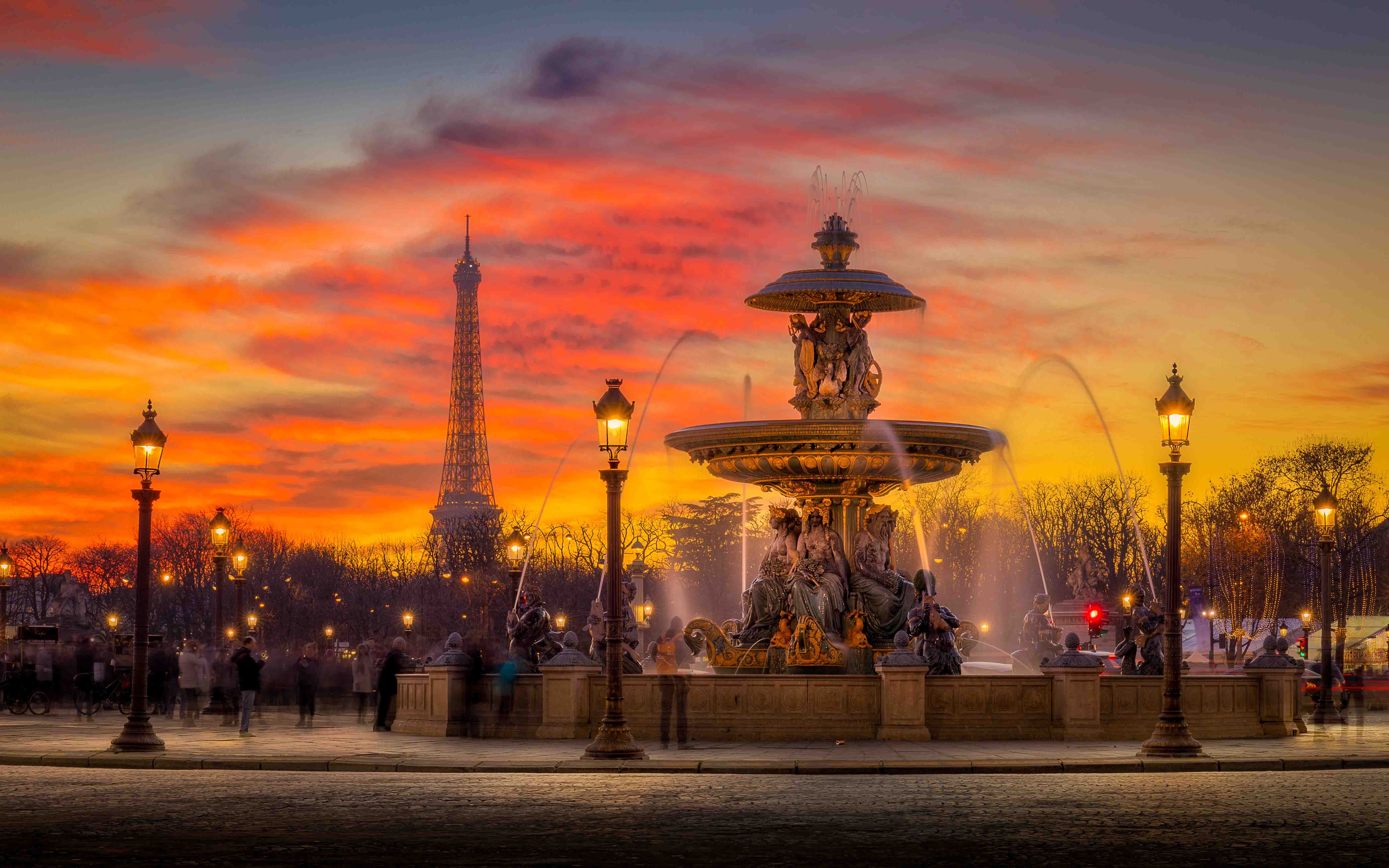 Sunset on the Concorde Square and the Eiffel Tower at Paris